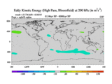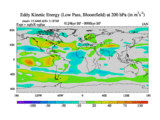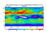 Low Pass Eddy Kinetic Energy at 200 hPa