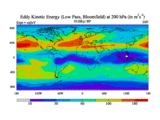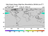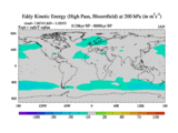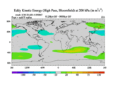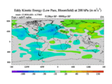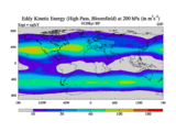 Low Pass Eddy Kinetic Energy at 200 hPa