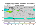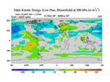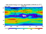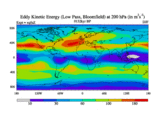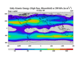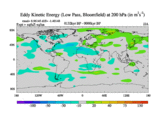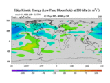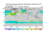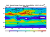 Low Pass Eddy Kinetic Energy at 200 hPa