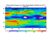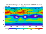 Low Pass Eddy Kinetic Energy at 200 hPa