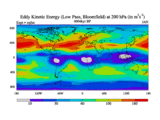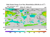 Low Pass Eddy Kinetic Energy at 200 hPa