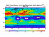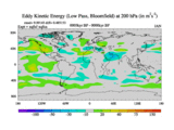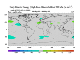 Low Pass Eddy Kinetic Energy at 200 hPa