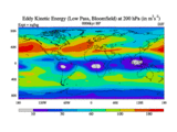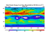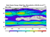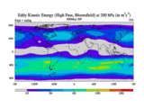 Low Pass Eddy Kinetic Energy at 200 hPa