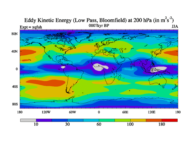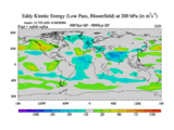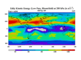 Low Pass Eddy Kinetic Energy at 200 hPa