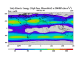 High Pass Eddy Kinetic Energy at 200 hPa