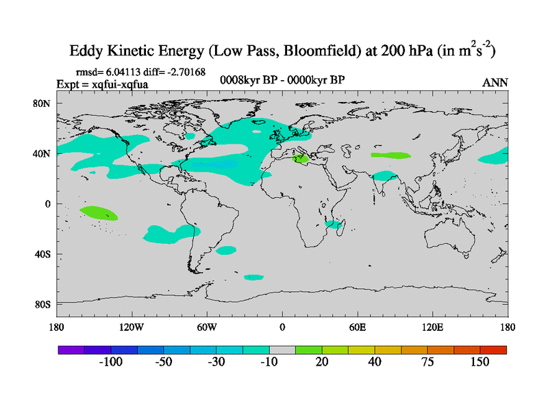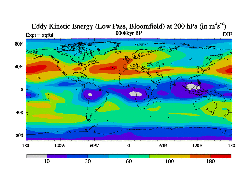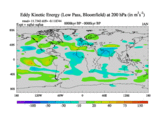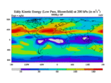 Low Pass Eddy Kinetic Energy at 200 hPa