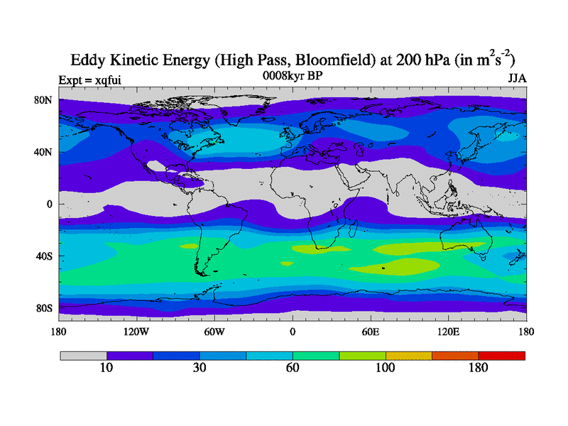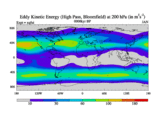 High Pass Eddy Kinetic Energy at 200 hPa