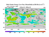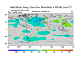 Low Pass Eddy Kinetic Energy at 200 hPa