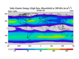 High Pass Eddy Kinetic Energy at 200 hPa