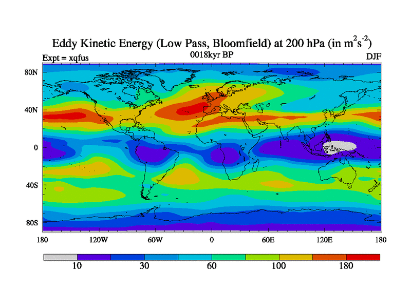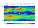 Low Pass Eddy Kinetic Energy at 200 hPa