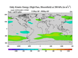 High Pass Eddy Kinetic Energy at 200 hPa