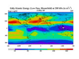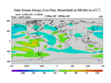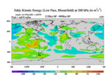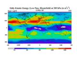 Low Pass Eddy Kinetic Energy at 200 hPa