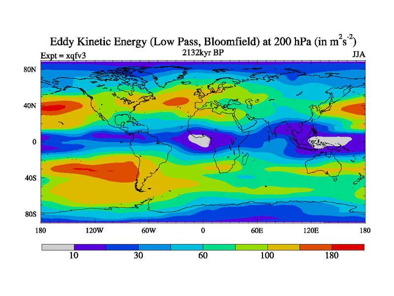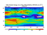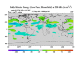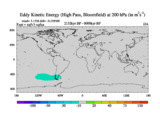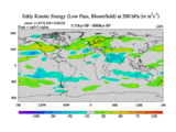 Low Pass Eddy Kinetic Energy at 200 hPa