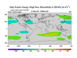 High Pass Eddy Kinetic Energy at 200 hPa