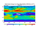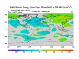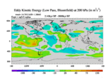 Low Pass Eddy Kinetic Energy at 200 hPa