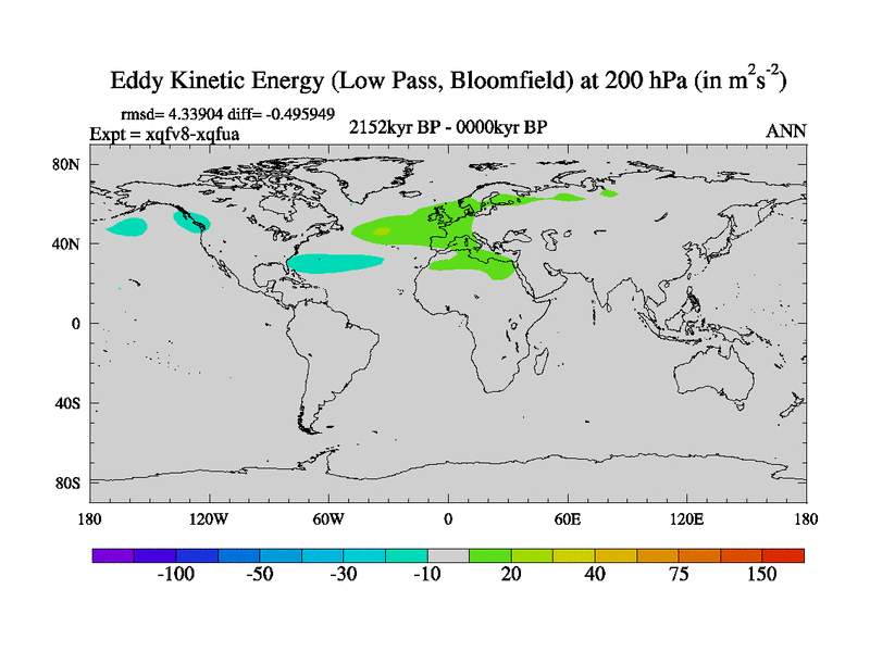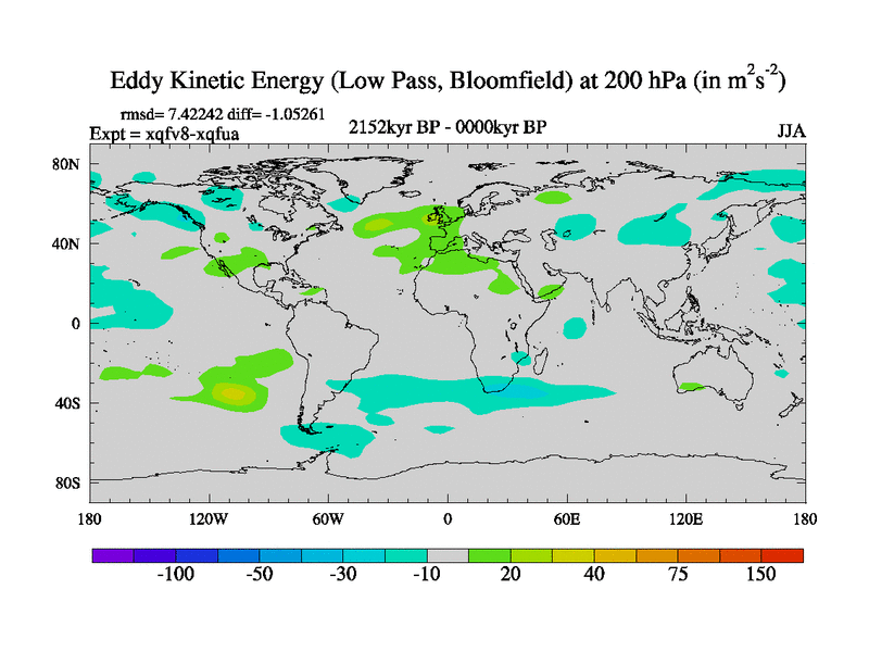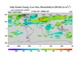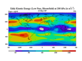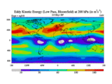 Low Pass Eddy Kinetic Energy at 200 hPa
