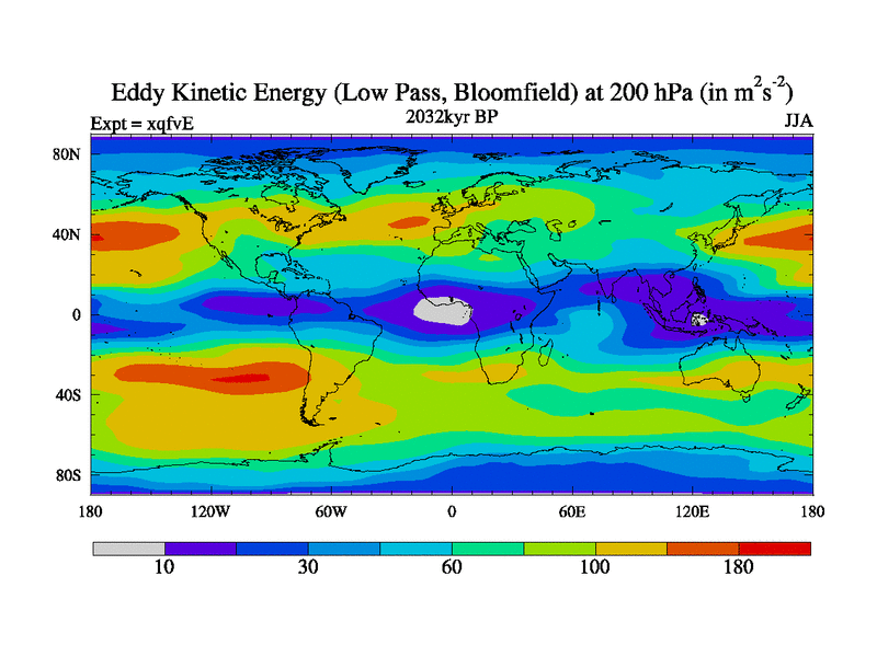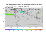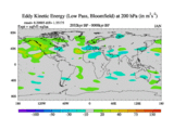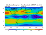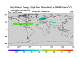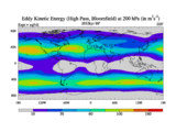 Low Pass Eddy Kinetic Energy at 200 hPa