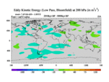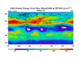 Low Pass Eddy Kinetic Energy at 200 hPa