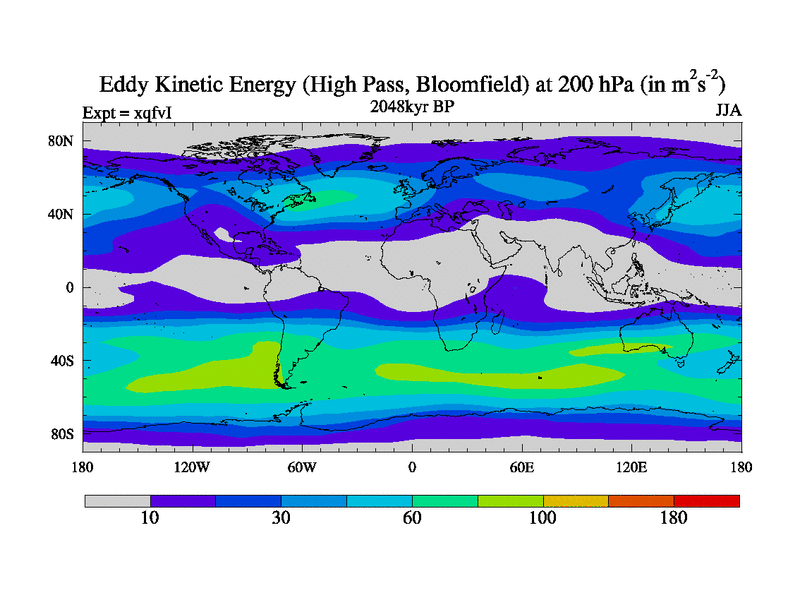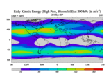 High Pass Eddy Kinetic Energy at 200 hPa