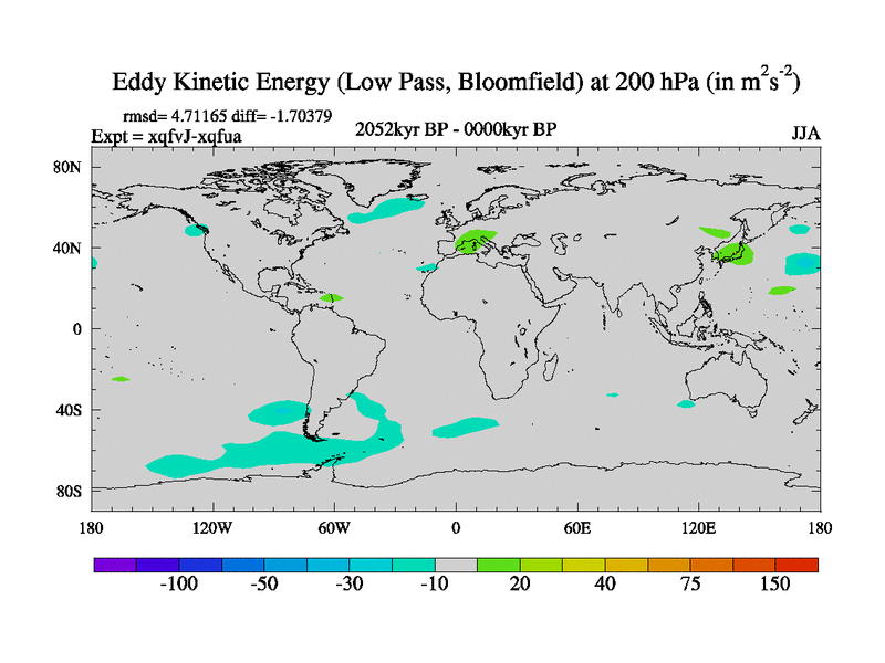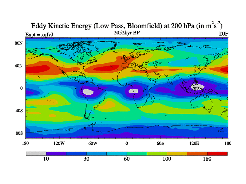 Low Pass Eddy Kinetic Energy at 200 hPa