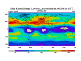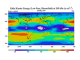 Low Pass Eddy Kinetic Energy at 200 hPa