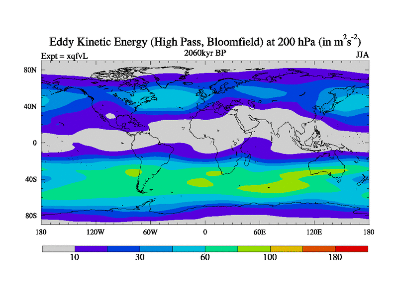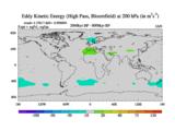 High Pass Eddy Kinetic Energy at 200 hPa