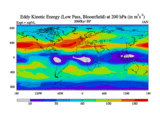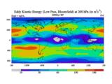 Low Pass Eddy Kinetic Energy at 200 hPa