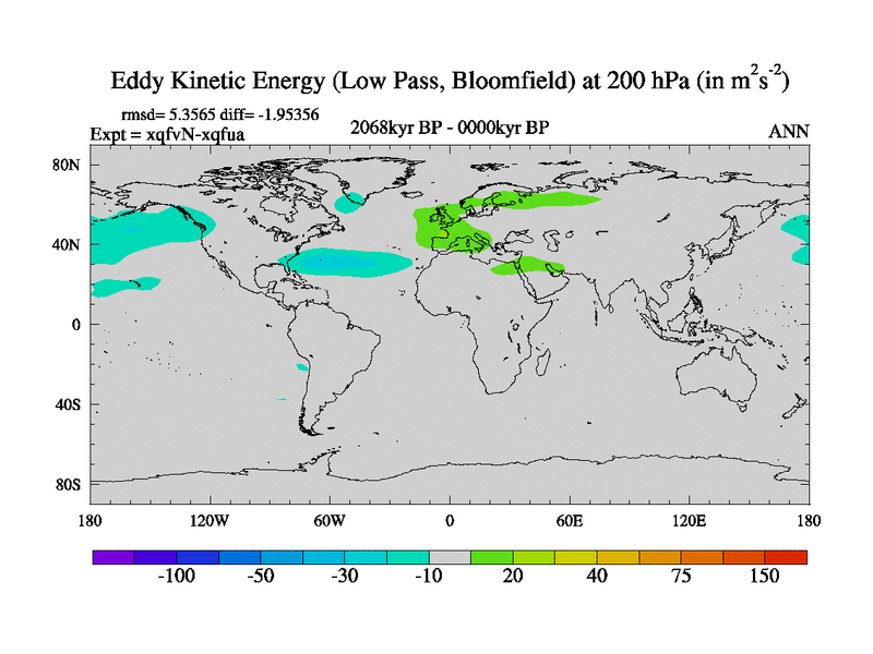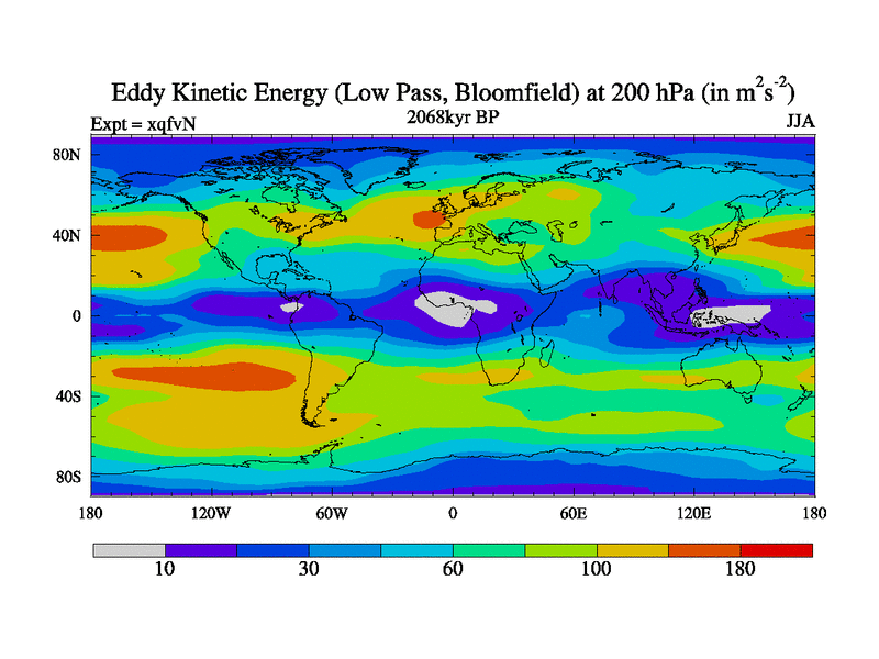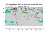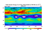 Low Pass Eddy Kinetic Energy at 200 hPa