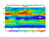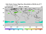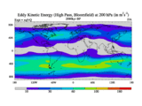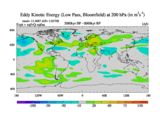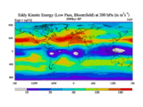 Low Pass Eddy Kinetic Energy at 200 hPa