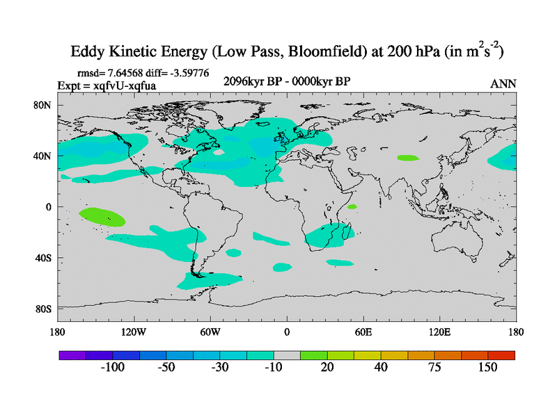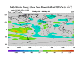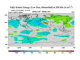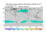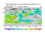 Low Pass Eddy Kinetic Energy at 200 hPa