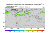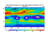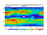 Low Pass Eddy Kinetic Energy at 200 hPa