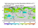 Low Pass Eddy Kinetic Energy at 200 hPa