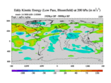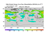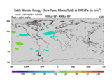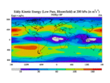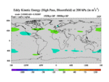 Low Pass Eddy Kinetic Energy at 200 hPa