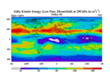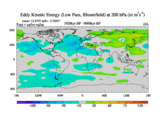 Low Pass Eddy Kinetic Energy at 200 hPa