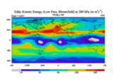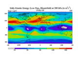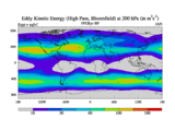 Low Pass Eddy Kinetic Energy at 200 hPa