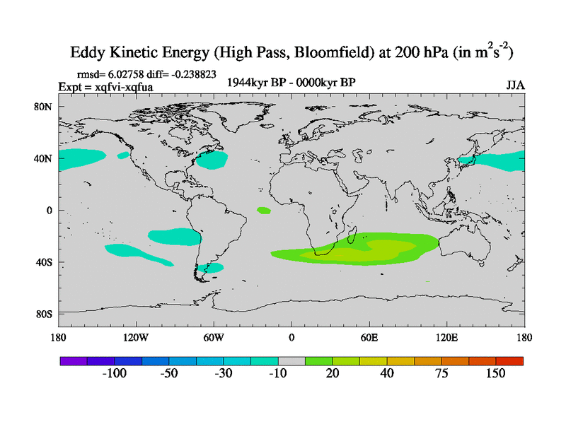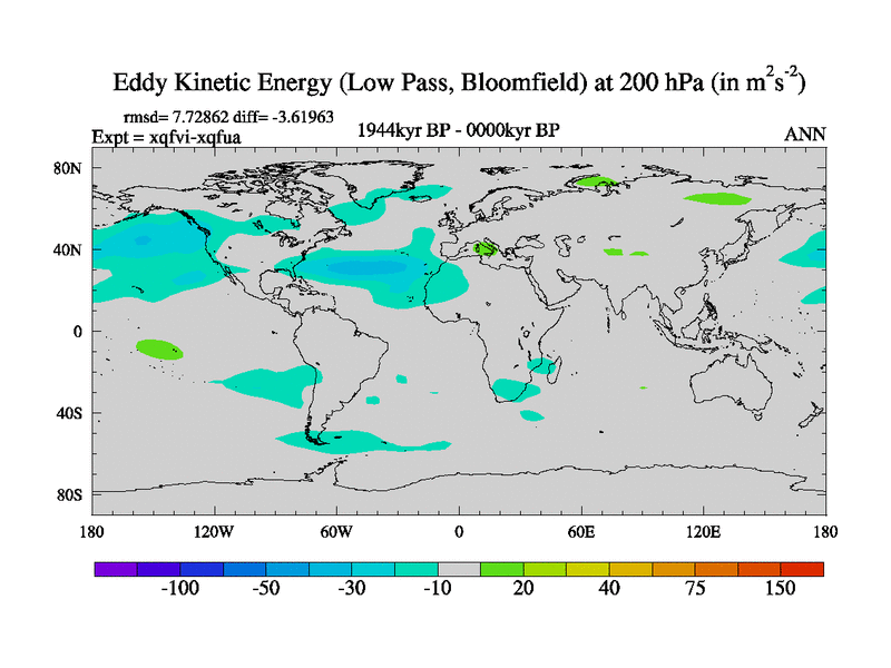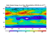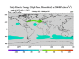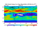 Low Pass Eddy Kinetic Energy at 200 hPa