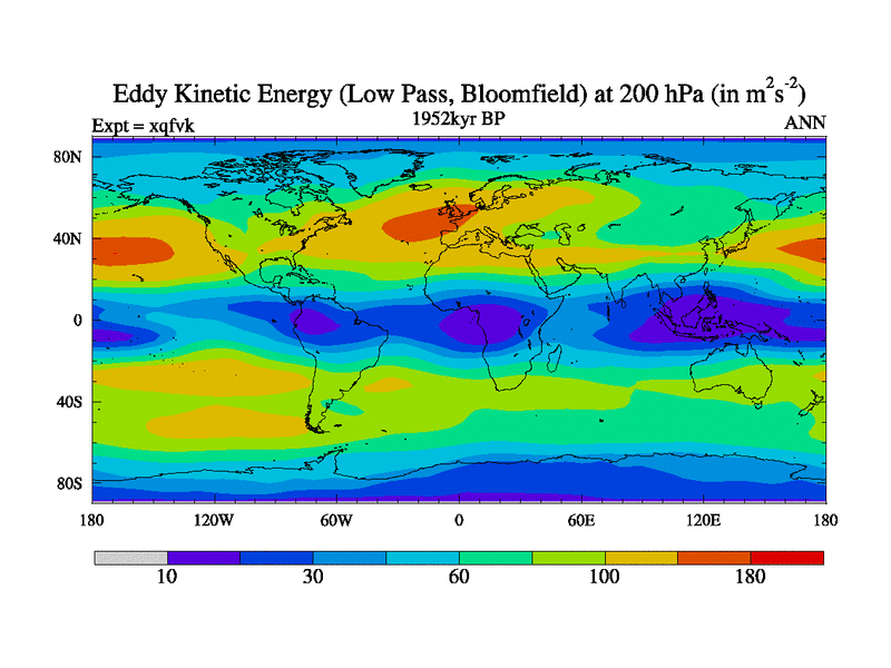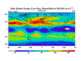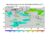 Low Pass Eddy Kinetic Energy at 200 hPa