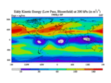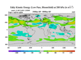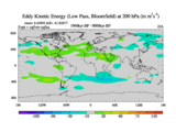 Low Pass Eddy Kinetic Energy at 200 hPa