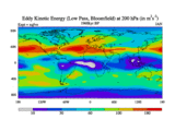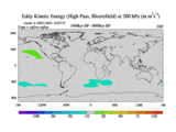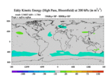 Low Pass Eddy Kinetic Energy at 200 hPa