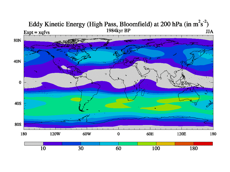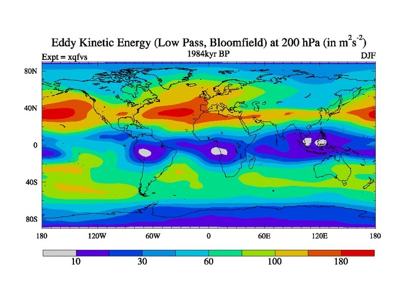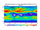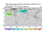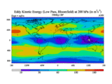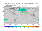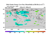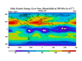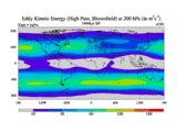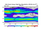 Low Pass Eddy Kinetic Energy at 200 hPa