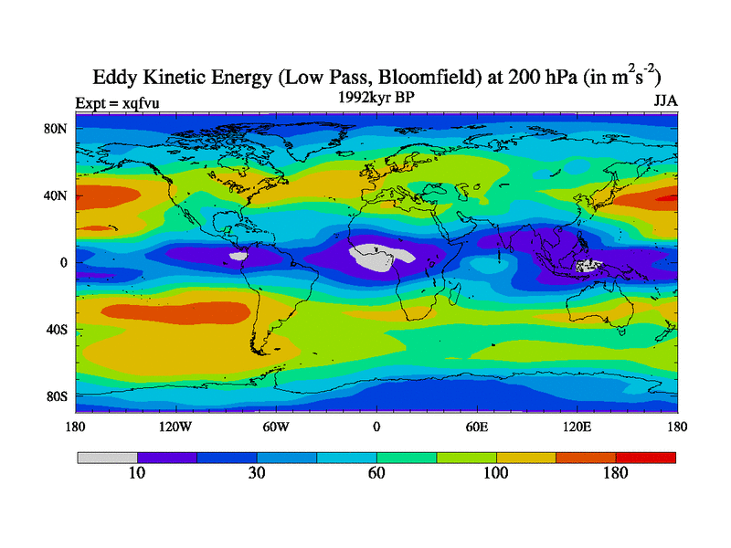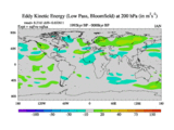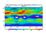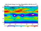 Low Pass Eddy Kinetic Energy at 200 hPa