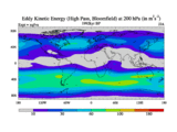 High Pass Eddy Kinetic Energy at 200 hPa